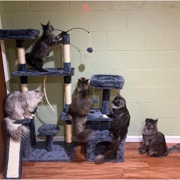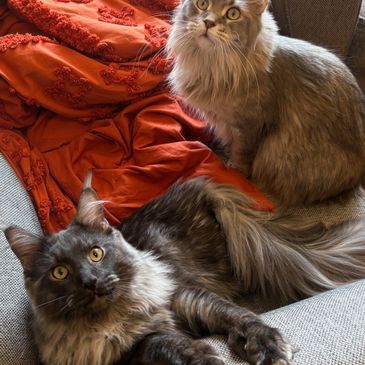 We are a small family-owned Maine Coon cattery in Peoria, IL. After adding Gildie Girl to our family, we decided to start breeding ourselves because we wanted to share the joy and love that these amazing animals bring to our lives. It was around this time that our sweet Reina Cakes passed away, and so in her honor, we named our company after her.